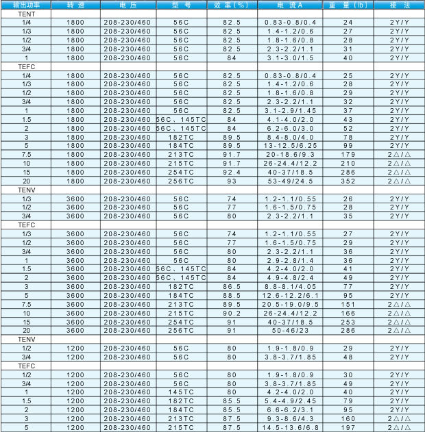 該系列電機為全封閉三相鼠籠式異步電動機。電氣性能及安裝尺寸均符合美國電氣制造商協會標準MG1-1998的相關標準,采用F級絕緣,尼馬 C或B設計。效率達到美國EPACT'92及NRCan的效率要求。機座號從56至250,功率等級從1 / 4到20HP的產品已獲得CSA(“C”及“US”)。證書號為:1414458。該型電機的軸、機殼、端蓋、螺釘等結構部件均采用不銹鋼材料。外型美觀光亮,抗腐蝕 ,無鐵銹、清潔衛生。可廣泛應用于食品,化工等行業。