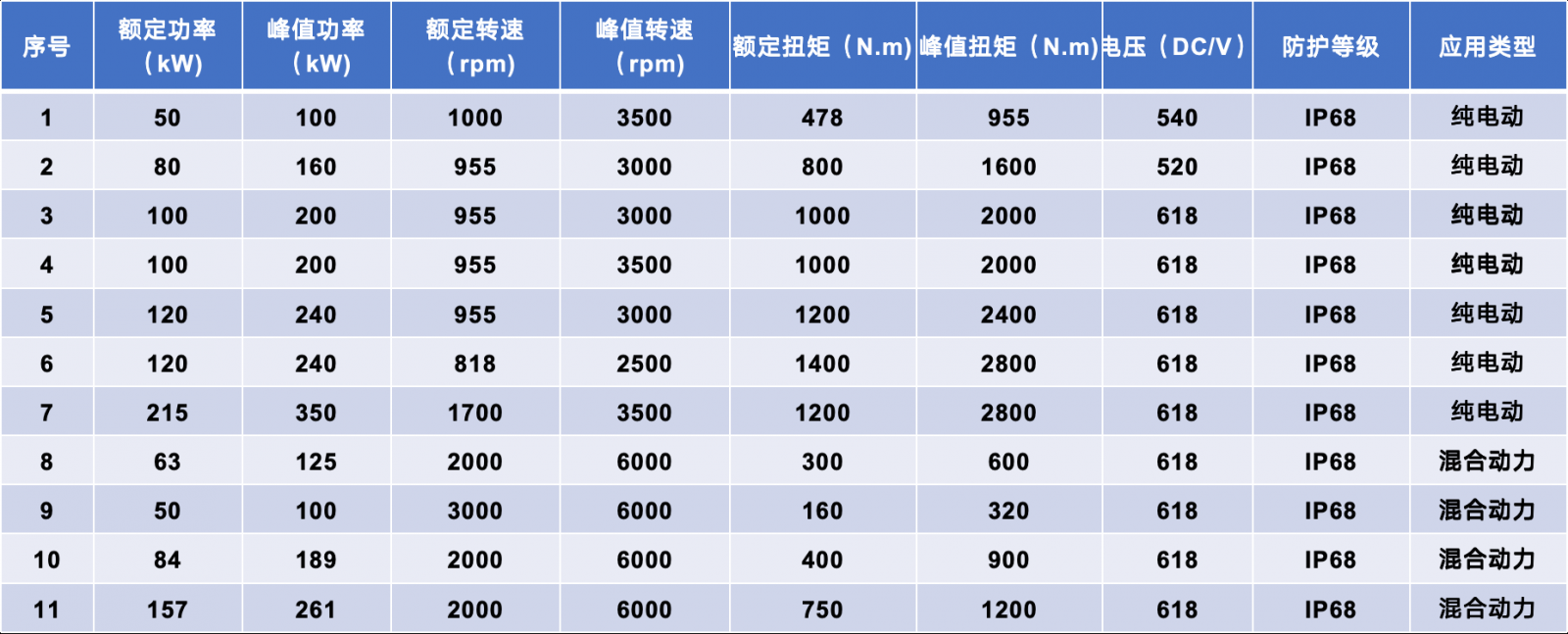 純電動(混合動力)中、大巴系列電機型號: